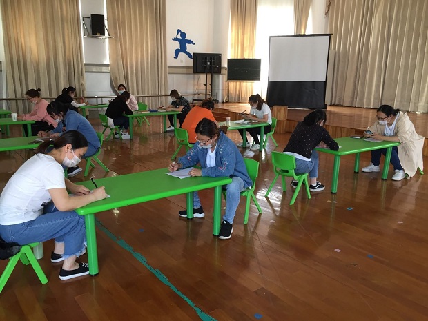 本次考试内容由新北区教育局统一提供,试题涵盖范围广,题型包括单选题、多选题、判断题和简答题,涉及《疫情防控指南》的主要内容,如防疫知识、应急处置流程、卫生清洁消毒制度、发热病例处置指南、学校开学防控实施方案等。百幼教职工高度重视,考试前纷纷以网络学习、小组讨论等各种方式增加相关知识储备,考试时按照疫情防控要求,佩戴口罩,保持安全距离,认真思考,积极参与。