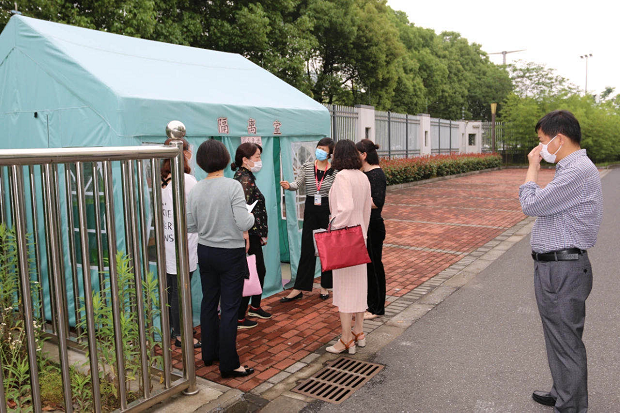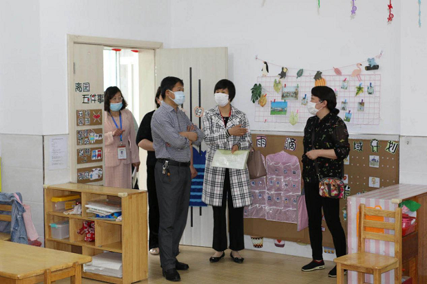督查领导组在周雪琴园长的陪同下通过实地查看、听取汇报、资料查阅等方式,检查我园准备开学复课的系列工作。