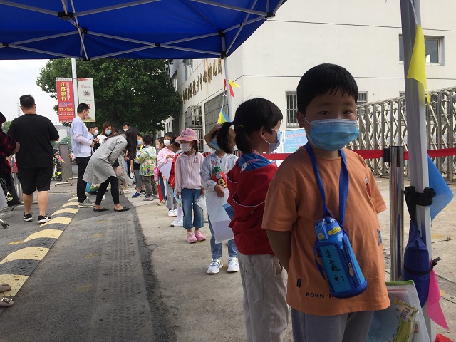 第一天入园,孩子们的脸上都露出了诧异的眼神,他们发现教室的每一张桌子、柜子都跟以前摆放不一样了,他们相互交流着:“我们的桌子怎么都被分开了?怎么一张桌子上就只能坐两个人?”“我们不能靠的太近,要保持安全距离啊。”“对的对的,就像我们来园时,排队也要分开是一样的。”孩子们用自己的理解解释着班级里幼儿园的不一样。