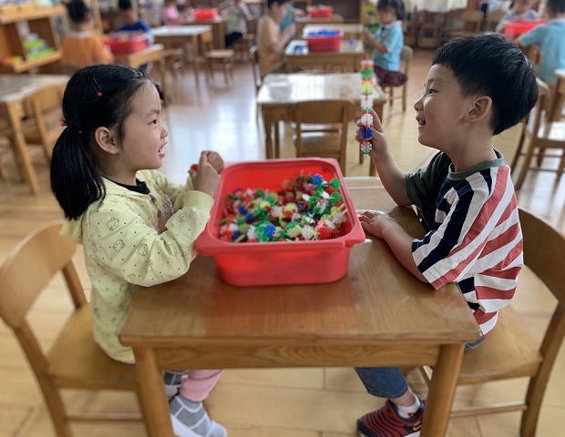久别重逢的孩子们在游戏中也特别开心。他们相互说着朋友间的悄悄话,一前一后地享受在轮胎上行走的乐趣,安静地一起拼着自己喜欢的拼图......好久不见的朋友,相聚是如此的幸福。