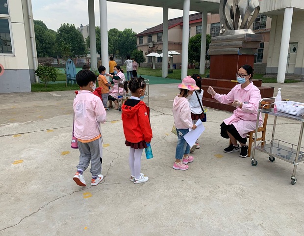 瞧,一大早,中班的孩子们都按时站在园门口两边的通道上,排着整齐的队伍,接受值班老师的体温检测,之后便独立入园。先用免洗洗手液洗手,接着去保健老师那里接受晨检,再按指定路线来到自己的教室。教室里的一位老师已在门口等待,为每个孩子进行第二次体温检测与记录,体温正常的孩子放好口罩、水杯,进入活动室……纵观孩子们整个来园过程都是从容不迫,他们自豪地告诉我们:“老师,我已经学会七步洗手法了!”“我知道怎么入园,我看过那个视频!”“我很棒,我会拎着自己东西进入幼儿园!”一句句童言中,展现出了中班幼儿自我的成长与蜕变。