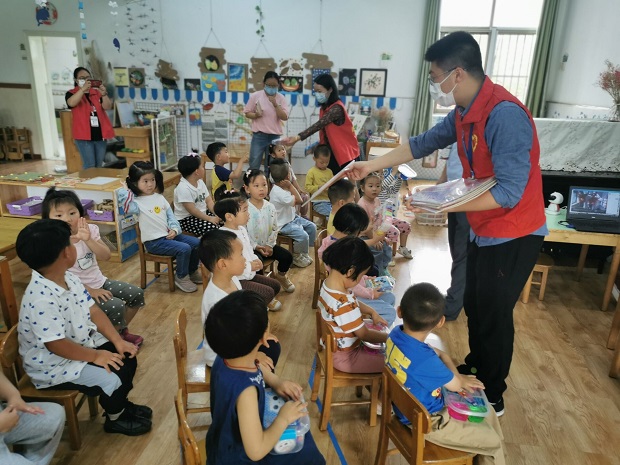 2020年5月29日上午,在“六一”国际儿童节即将来临之际,滨开区管委会主任、春江镇镇长姜浩一行四人莅临百丈中心幼儿园,向孩子们送上节日的祝福,并向辛勤工作在一线的全体教职工致以亲切的问候!百丈社区志愿者也给孩子们送来了精美的礼物。