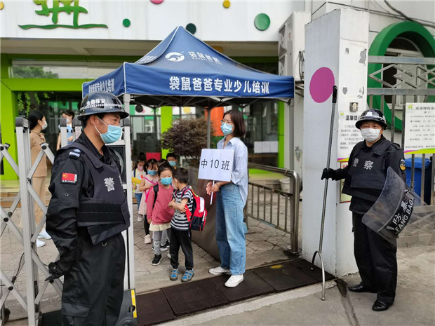 清晨,老师、保育老师及值班人员就进入忙碌工作状态:场地布置、测温设备、安保值班及各点人员到岗等,为幼儿安心入园保驾护航。