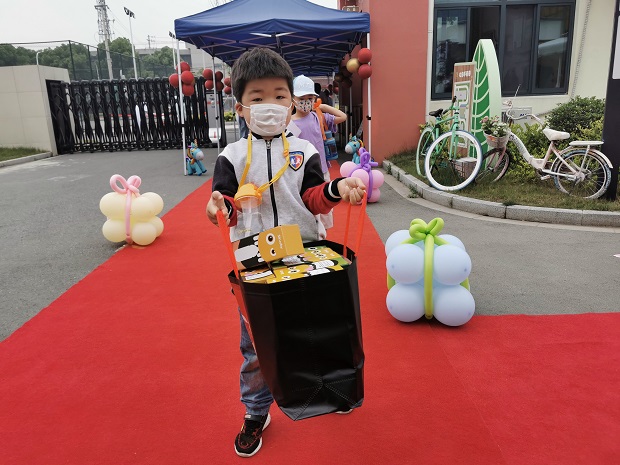 随着一声“看,孩子们,谁来啦!”的呼喊,两位园长妈妈的“六一欢乐派礼”拉开序幕。园长妈妈推着装满礼物的餐车,走进一个个教室,给正在进行游戏的孩子们带来意外的惊喜!园长妈妈热情地给孝都幼儿园每个班级的每个孩子送上六一节的礼物以及真挚的祝福,孩子们在收下礼物的同时也开心地回应着:“谢谢园长妈妈!”,每个孩子的脸上洋溢着幸福的笑容!