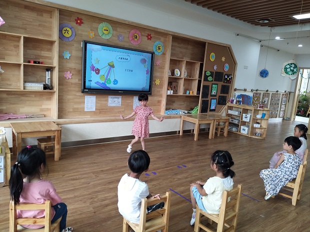 回到班级,欢乐的气氛仍在继续:教室里,老师们提前将班级里做了装饰,让教室里有了过节的氛围。每个班级的老师带着孩子们开展了个性化的庆祝活动,有的采取了小小联欢会的形式,各自准备节目表演;有的采用茶话会的形式,边吃边玩;有的是小小闯关游戏,闯关成功就有奖品哦!……在欢歌笑语中,孩子们在各自的班级中开心的庆祝着属于自己的节日。