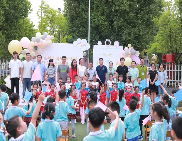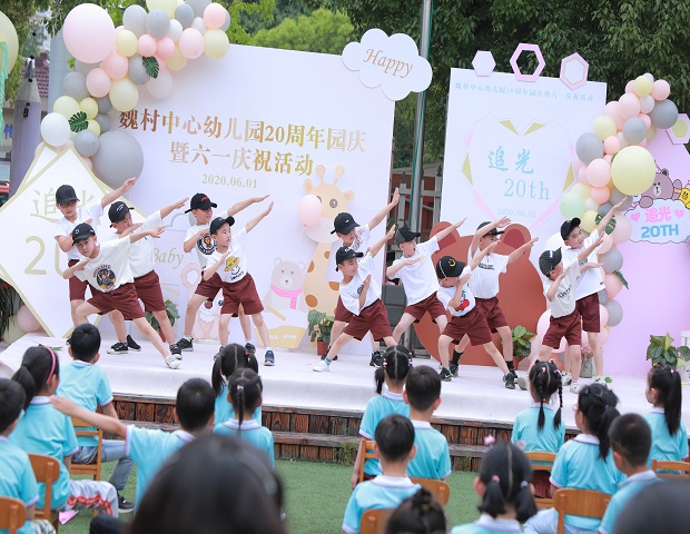 六月是喜悦的季节,六月是收获的季节,六月是孩子们的季节,在这充满欢乐和幸福的季节里,魏幼举办了“追光20——20周年园庆暨六一庆祝活动”,把满腔的热情化作深深的祝福。参加庆典活动的有常州滨开区春江镇副镇长马琴、滨开区社会事业局党支部书记巢萍霞、副局长陈燕以及各社区领导,春江镇人大主席、魏村办事处书记严卫国以及建园之初的魏村镇原党委书记韦士章、原魏村小学丁益新校长及现任吴伟校长、家委会代表以及魏幼优秀毕业生代表。