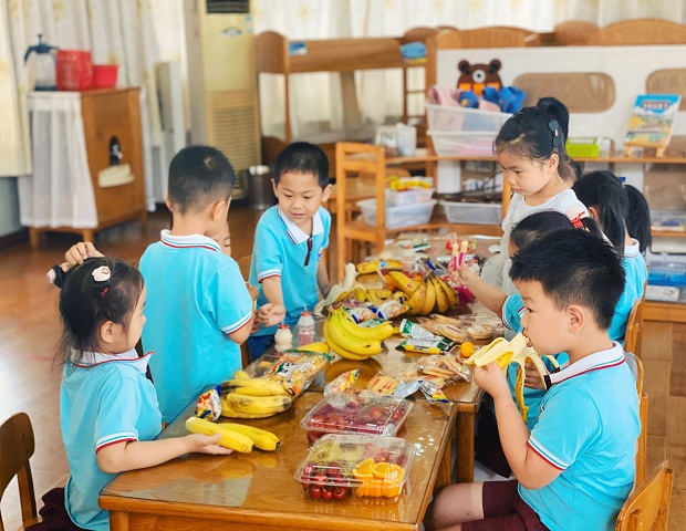 期待已久的美食分享开始喽,一盘盘色彩诱人、香气扑鼻的美食,送到了小朋友面前,自己选择喜爱的食物,享受美食,有人说,完美的自助餐=爱+美食+创意+成长+快乐,真是舌尖上的美味!他们和小伙伴们互相交换,共同分享,时而欢声笑语连成片,时而专注研究乐开怀,时而你学我帮促交流,草坪上,教室里,不同的空间环境下,让孩子们的情感得到最好的交流,增进了彼此的了解与情感。