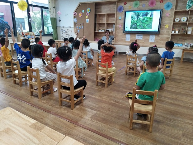 采摘活动前,老师们首先带着孩子就采摘活动中遇到的问题进行了讨论:什么样的桃子可以采摘呢?可以用到哪些工具?采摘过程中要注意些什么呢?对于这些问题,小朋友们纷纷举手表达自己的想法:
