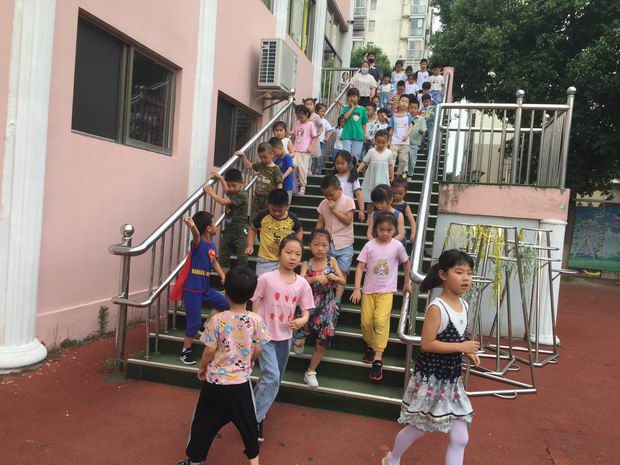急促的警报声响起,孩子们在老师的指引下按既定路线向园内空旷地段撤离,随后各班教师清点人数并逐层上报。整个演练活动井然有序,仅用时1分40秒。朱华娟副园长对本次防踩踏演练活动进行了总结,肯定了演练过程中的优点:安全、快速、有序,就防踩踏演练中的注意事项与幼儿进行了交流。