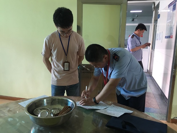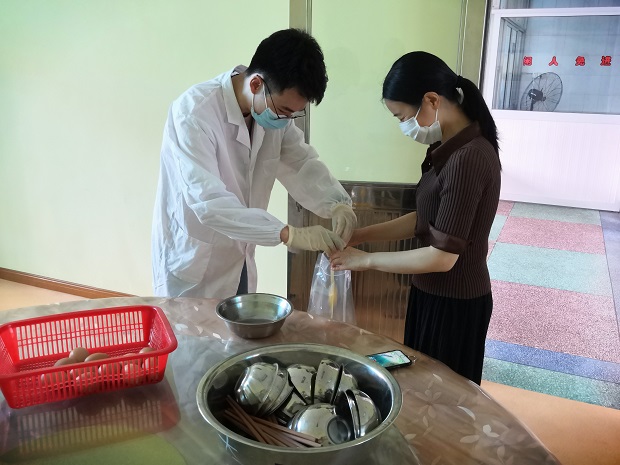 针对检测内容和要求,保健老师杨菁早就作好了物品的准备,本次检测的对象为鸡蛋和餐具。杨老师按要求提前准备好16个鸡蛋、10个幼儿用不锈钢碗,一诺食品检测中心的工作人员规范装备,在杨老师的协助下,对采样食品和物品进行装袋、封口、放入专用箱子带回备检。随后,市场监督局的领导们进行了三十项常规检查,在检查过程中及时与杨老师进行交流反馈,这对安家幼儿园食堂工作进一步规范管理起到了很好的引领、监督作用。