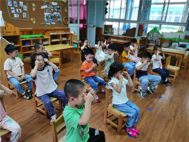常州市妇幼保健院儿保科杨医生引导幼儿观看了“儿童眼保健视频”,对眼保健指导及屈光不正的误区作了详细介绍,让家长、教师、幼儿更进一步了解到保护眼睛的重要性,懂得要爱眼护眼。视频观看结束后,老师与幼儿伴随着舒缓的音乐,用正确的方法做起了眼保健操。