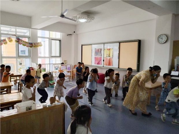 上午10点随着火警警报声响起,各班教师快速、有序地根据规定的疏散路线带领幼儿捂住口鼻,压低身体疏散到空旷的操场上,到达场地后各班老师进行人数清点,确保所有幼儿都到达安全地带。与此同时各班保育老师迅速拉断教室的电源总阀,另一老师快速用灭火器对准电线着火处进行灭火,整个演练活动紧张而有序。