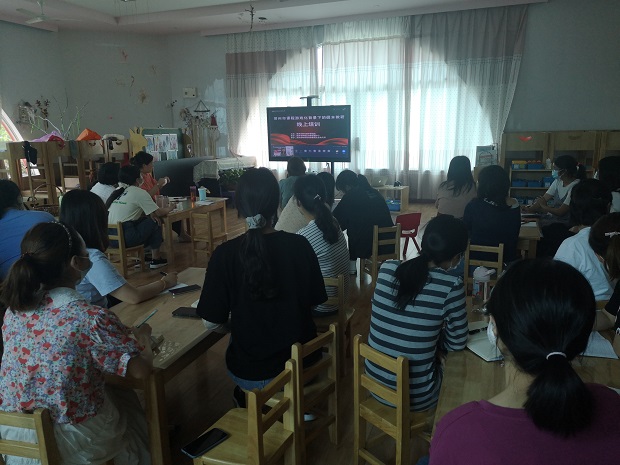 虞永平教授说:“把课程游戏化看成一个质量工程。其最核心的目的就是让幼儿园课程更加贴近幼儿的实际发展水平,贴近幼儿的学习特点,贴近幼儿的生活及兴趣与需要”。然而怎样使我们关于课程游戏化背景下的园本教研是行之有效的,怎样教研出贴近幼儿的课程呢?6月19日中午,安幼的全体教师利用网络培训的契机,一起聆听了常州市教科院邀请的丹阳市正则幼儿园吴益斐园长关于正幼是如何在课程游戏化背景下进行园本教研改革的经验分享。