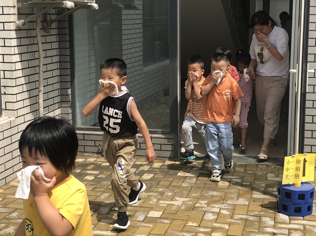 为了进一步提高全体师幼对突发事件的应急能力。2020年6月23日上午,小河中心幼儿园东六园区对全园师生进行了一次消防应急疏散演练活动。