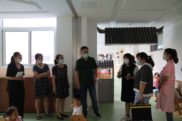 督查组在该园邵勤娴园长的陪同下查看了隔离室的设置、保健室的物品摆放、观察室的设施设备以及疫情物资储备情况,还走进食堂了解生熟食的进出流程,并查看了食品留样以及物品库的管理等。督查组对于我园常态化疫情防控的高标准落实给予了肯定和赞扬。