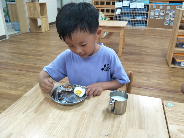 品粽子是中华民族自古以来的传统习俗,由于各地饮食习惯的不同,粽子形成了南北风味;从口味上分,粽子有咸粽和甜粽两大类。端午食粽的风俗,千百年来在中国盛行不衰,已成了中华民族影响最大、覆盖面最广的民间饮食习俗之一。苗苗三班的宝贝们带来了口味多样的粽子,来和小伙伴们一同分享,有蜜枣粽、肉粽、蛋黄粽、豆粽、花生粽等,这些都是孩子们各自最喜爱的口味。在老师的组织下,孩子们以自助的形式,选择了想吃的粽子。品尝过程中,孩子们都吃得津津有味,嘴里还说着:“今天的粽子真是格外美味呀!”