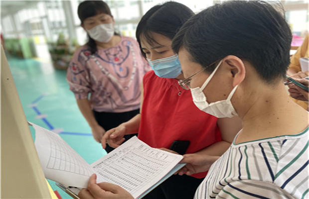 开学已有一月余,疫情防控,重任在肩,容不得丝毫马虎,为进一步加强疫情卫生保健管理工作,提高园所卫生保健工作质量,6月22日下午,新北区托幼机构卫生保健专项督查组莅临指导,镇里四所姐妹园保健老师陪同观摩,现场经验碰撞。
