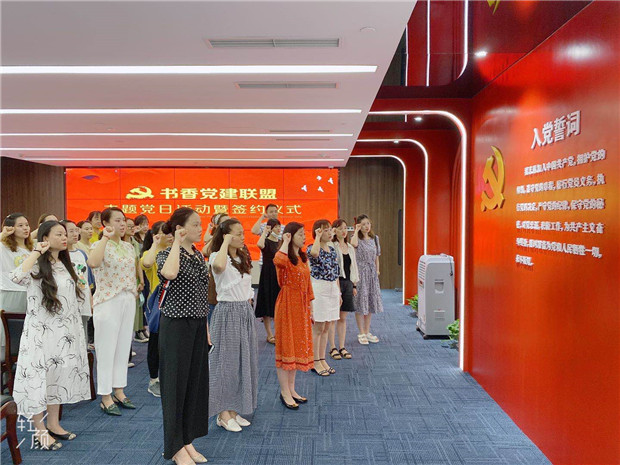 为了全面提高机关企事业单位党员的思想政治素养和科学文化水平,常州市图书馆新馆利用丰富的馆藏资源在全市搭建起一个系统化、多元化、一体化的“红色阅读”平台。在建党99周年之际,三井街道幼教联合党支部与常州图书馆“碰碰头”,联合开展了书香党建联盟主题党日活动暨签约仪式,约定共建书香联盟,共贺周年。