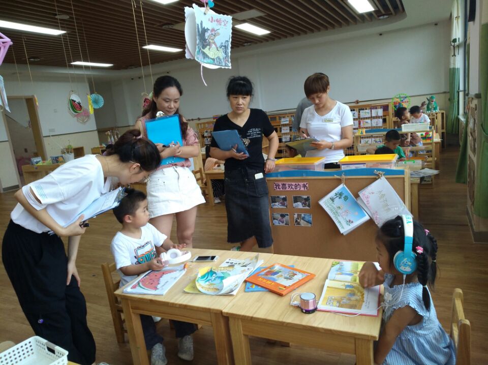 早期阅读是幼儿园语言教育的重要类型,能有效促进幼儿认知能力、情绪和社会性、人格等方面的发展。为进一步改善班级阅读环境,充分发挥班级阅读区的教育价值,培养幼儿持续的阅读兴趣,养成良好的阅读习惯,提升幼儿的自主阅读能力。2020年7月6日上午10点行为观察组的全体老师流动式参观了3个班级的阅读区环境创设和区域游戏,下午13点展开了《同观阅读区,共研阅读趣》的教研活动。