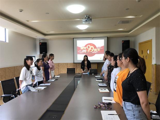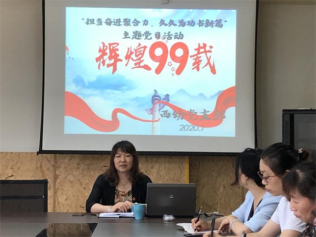 为热烈庆祝中国共产党成立99周年,2020年7月3日下午,西夏墅中心幼儿园党支部所有党员在支部书记孙步英的带领下共同开展了一次庆党、忆党、爱党主题党日活动,全体在职教师党员参加。