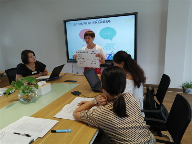 通过班级案例故事经验的分享,老师们都能从中学到有用的经验,并学以致用。接下来是研讨环节,年级组围绕疫情期间,线上线下沟通的区别及沟通策略进行讨论,最后老师总结出与家长适宜的沟通策略。