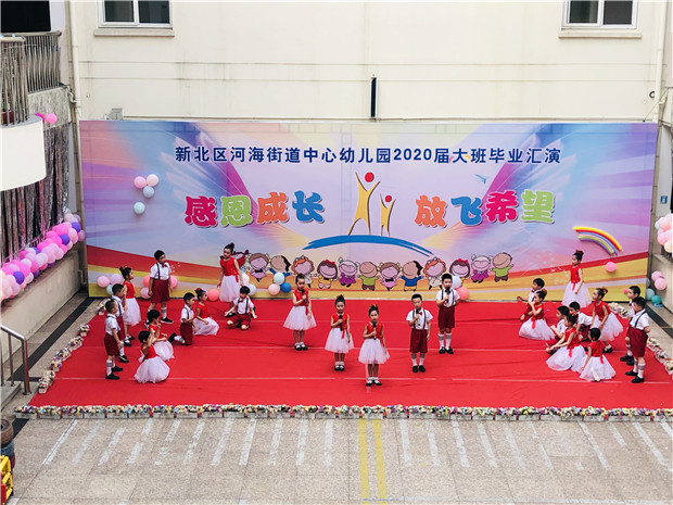 7月7日、8日,河海街道中心幼儿园国宾部和岷江部,分别举办了主题为“感恩成长,放飞希望”的2020届大班毕业汇演活动,时长约两个小时。本次毕业汇演恰逢疫情期间,没有家长、没有观众、没有掌声。但是,孩子们依然精神饱满,散发着由内而为的自信与活力。