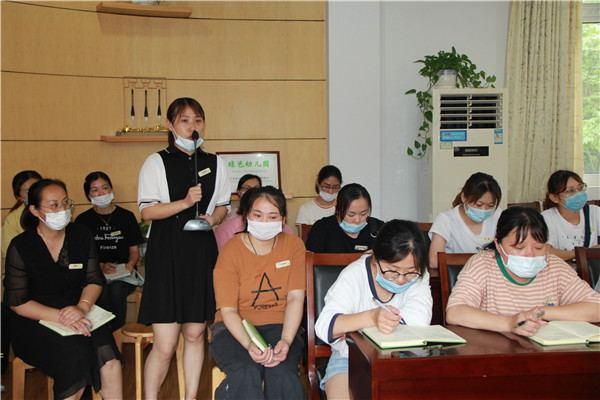 在观看了影片后,各园区的保育员老师纷纷讲述了自己在工作中被感动的瞬间。因为爱,每一个故事都让人感动,因为有心,每一次诉说都充满了爱。一个孩子一片云,没有一片白云是可以复制的。在三言两语间,我们已经感受到了孩子们的天真活泼,更体会到了后勤工作重要性以及守护孩子安全健康的责任之大。