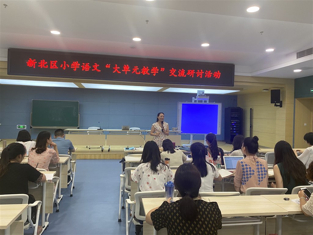 继上次基于语文要素的单元整体教学设计交流会之后,意犹未尽的我们于7月12日下午再次齐聚新桥第二实验小学开展新北区小学语文“大单元教学”交流研讨活动。戴晓娥院长和薛校参与了此次研讨。此次活动由薛校主持,分三个板块进行。