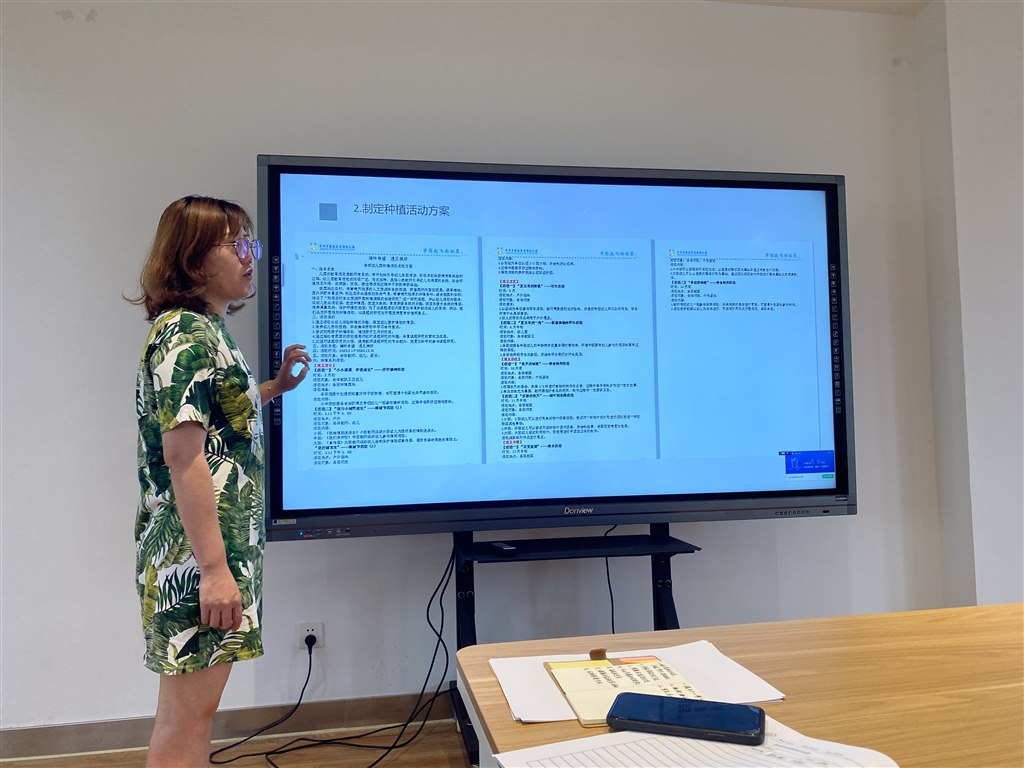 刚开始,大家一起回顾这一年课题开展的情况,不断反思、发现自身的不足,如:资料的收集不足,种植课程的呈现不到位,课程环境的打造不丰富等等,教师们就这些问题对明年的课题活动进行展望构思,明年的重点是梳理课程内容,理念的更新,环境的优化。