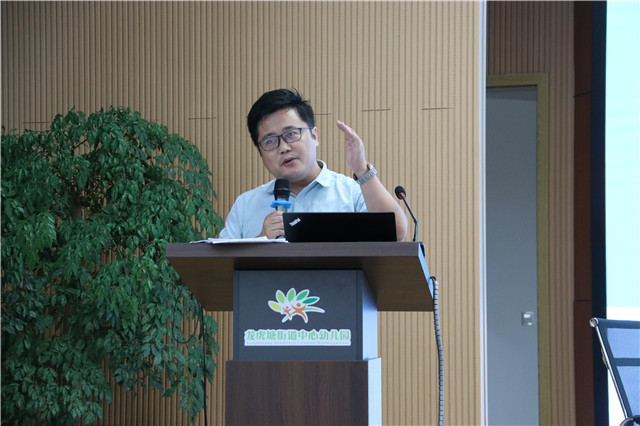 课程园本化是课程实现适宜性的关键。如何解决幼儿园课程开发与实施中存在的具体问题,课程审议成了一种很好的解决方式。为进一步加强龙幼班主任工作热情,树立班级课程深化典型,提升教师整体课程领导力,2020年7月11日下午,龙虎塘街道中心幼儿园全体教师齐聚盘龙新园区报告厅,开展“优秀班主任评选暨课程发布会暨园级课程审议”活动。本次活动特邀新北区教研员徐志国老师来园指导,旨在课程发布及审议思辨中理解“幼儿园课程游戏化、生活化、经验化”,寻找符合龙幼特质的优秀班主任。