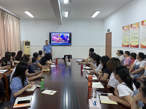 为进一步提高幼儿教师的消防安全意识和自防自救能力,全面推进校园消防安全宣传工作,8月28日下午,汤庄桥幼儿园邀请了常州市安宣防火宣传中心的范鹏教官,到汤幼对全体教职工开展一场生动的消防安全知识培训。