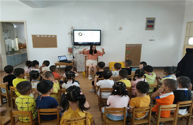 幼儿园里欢乐多。在半天的活动中,孩子们在学校玩游戏、吃点心、听故事、一个拉着一个排成小火车去校园散步,渐渐地孩子们从惧怕幼儿园变成喜欢上幼儿园。