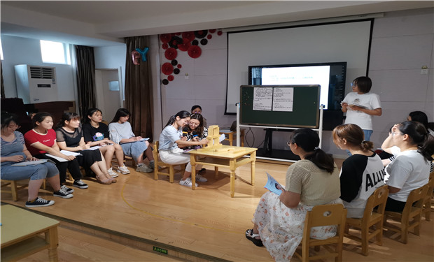 假期中,申报该项目的老师,通过小组研讨各自确立了《小脑袋、大问题》、《儿童的100种语言》、《窗边的小豆豆》三本专业书籍,精心准备开展了本次分享交流活动。新龙园区以“快乐拍手歌”音乐暖场,开设“角色扮演”“智慧锦囊”等多种情景体验;滨江园区以“通读+精读”的形式为大家罗列、梳理了书中的重点章节和知识体系;西阆园区从“猜猜她是谁”游戏入手,针对“高水平的提问”为重点话题以“分组交流汇报”的形式展开教研。不同的专业书籍,形式也各不相同,给场下的观摩者以视觉、听觉等多元的感受和冲击。