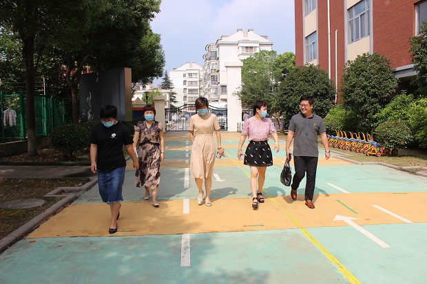 在赵晓丽园长的陪同下,徐老师实地查看了门卫、校园环境、食堂、防疫设备、班级环境等,详细了解幼儿园开学第一天工作安排、错时错峰入离园、课程建设等相关工作。