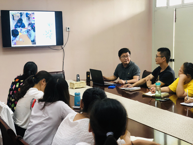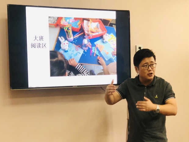 徐老师从“一个属于儿童的环境到底是怎么来的?”入手,通过高瞻的理念、生动的案例,对“开学前环境创设的五点标准”、“开学前教师的四项工作”、“三大课程”等方面进行了全面、细致、精到的解读。同时,鼓励百幼教师针对“儿童环境”、“新学期幼儿的需求和兴趣点”等专题进行教研,立足儿童立场,坚持做“幼儿立场”的课程。