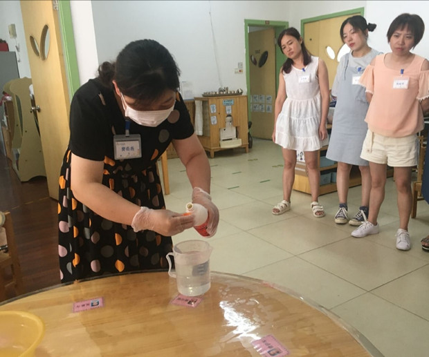 有了上学期复学的经验,9月的新学期学校对防疫这件事有了充足的准备。虽然任务依然艰巨,但所有的教职工都能按照上级要求,井然有序地填写复学资料,布置防疫环境,充分发挥华幼人追求卓越的精神。针对重点环节再次组织开展“情景式”疫情防控应急演练。通过预设幼儿呕吐情景,保育老师进行实操演练,并根据实操中遇到的情况进行优化和完善,强化教职工的防范意识和应急处理能力,有效促进我园防控工作的科学化、标准化、细致化。