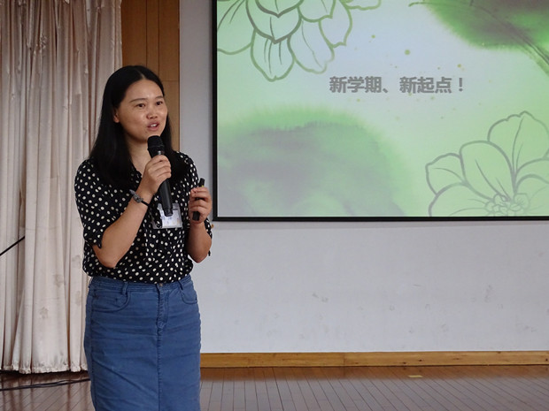 芮之老师作为优秀教师发言,分享自己从教多年的班级管理经验,讲述入职前后的心路历程。