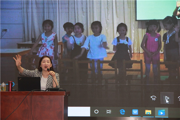 8月29日上午,龙幼老师与牵手共建姐妹园滨江豪园以及“四有”好教师团队建设共建园孟河幼儿园的老师齐聚龙幼盘龙新园区,共同聆听钟楼区幼教管理中心专家俞莉主任的绘本专题讲座。俞主任以《以绘本为背景的幼儿全领域教学的实践思考》为题,从绘本的重要作用、绘本教学的认识误区、绘本教学的价值和多元策略展开,用微格研究的方法带领着大家共同观看了两场绘本教学活动,从教学设计、教师回应、能力培养等方面来解析上海名师绘本教学中所蕴含的丰富内涵以及润物无声的教育魅力。精彩的讲座深深吸引了所有老师,每个人的脸上都洋溢着肯定、赞许、惊喜。最后,宋一叶副园长进行了总结:希望大家在绘本教育中格局高一些、视野大一些、研究细一些,在强内功、巧策略、推能力上下功夫。