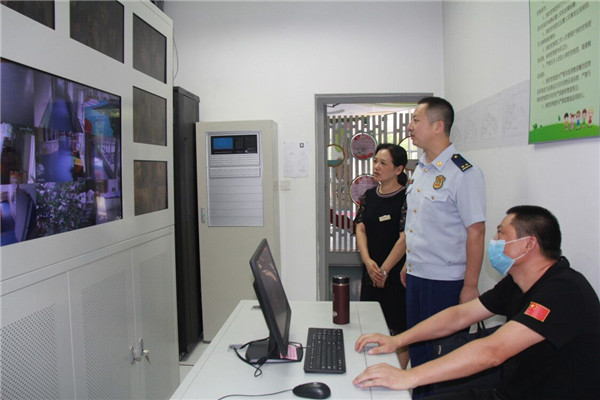 检查组由教育、公安、消防、政法等部门联合组成。在高亚媛园长的陪同下,检查组通过查阅台账资料、实地察看、现场询问等方式深入了解我园安全情况。区公安分局杨一中局长在门卫室详细查看了门卫24小时巡查记录、监控设备及安保装备管理情况。区教育发展处柳阳主任深入食堂,对食堂卫生、留样冰箱、库房物品等进行多方位的查看。消防大队钱正新队长查看了消控室的消防设备、微型消防站、各楼层消防栓等,进一步明确职责,责任到人,齐心协力把安全工作落到实处。最后,检查组查阅了人防、物防、技防及综合治理等各项安全台账资料,结合实地查看情况反馈对我园的安全工作给予了充分的肯定,同时也提出了宝贵的意见。