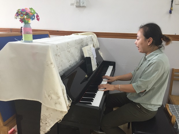 技能考核包括故事表演、自弹自唱两项内容,以年级组为单位,分组进行。老师们用幽默的言语,丰富的表情,生动的肢体动作把故事的情景活灵活现地展现出来,将大家带入生动有趣、童真诙谐的故事情境中。同时,老师们“弹”功先行,基础为实;“唱”功扎实,配合有章,展示了良好的艺术功底。