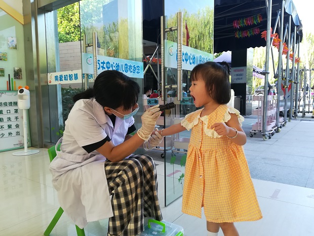 宝贝们在校门口告别家长,独立入园。经过测温、洗手、晨检再入园。在班级老师的带领下由指定的路线来到自己的班级。宝贝们一天的幼儿园生活拉开了序幕。