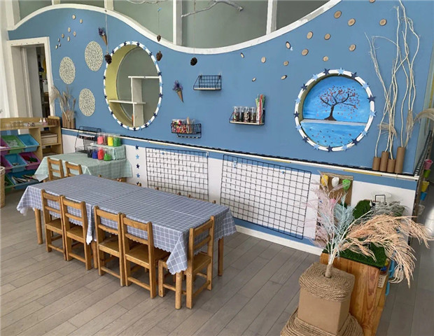 利用暑假时间,老师们就围绕支持性环境创设进行了方案制定以及线上研讨和交流。基于小班化教学模式的设定,教室的区域也重新进行了规划,教室的环境和园区内的公共区域环境老师们也是精心布置,只为迎接小朋友们的到来。