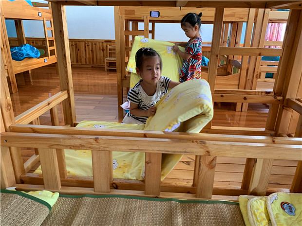 一大早,孩子们独自一人拎着床上用品,跟随老师提前发的班级路线视频寻找各自的班级。虽然背包很重,寻找的过程中遇到了各种各样的问题,但是孩子们都能勇往直前,各种问题都迎刃而解。进入教室又开始自主选床铺,自己铺床,自己设计喜欢的创意标签,自主选择衣帽柜,自主粘贴标签……一系列活动中孩子们俨然一个个生活小能手,样样事情都能干!