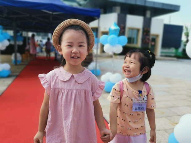 通过前期老师们精细准备的“线上云课程”及“开学报到半日适应体验”,小班的宝宝们早已和老师云端、线下相见,建立了良好的师幼关系。基于疫情防控最新要求,小班宝贝们首次尝试独立入园,但是孩子们的表现让人频频点赞。可爱梦幻的卡通人物、美丽梦幻的气球立柱,充斥着满满的迎新仪式感;丰富的游戏、多元的材料,边玩游戏边入园的游戏化方式吸引着小朋友们快乐入园;保健老师们细致到位的晨间检查、班级老师趣味的引导直面疫下挑战,大家尽一切努力缓解宝贝们的入园分离焦虑!