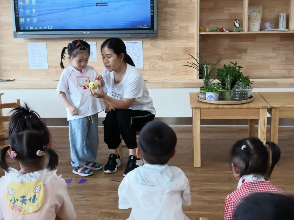 你瞧!在点名游戏中宝贝们勇敢自信的向大家介绍自己。