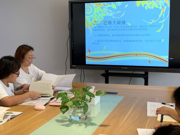 活动从一段励志视频“永不放弃”中拉来了帷幕,大家在这段视频中感受到只要坚持下去,不放弃每一个孩子,孩子都会在我们的陪伴下健康快乐的成长。紧接着大家围绕《幼儿园保育员工作指南》第三章展开了阅读研讨活动,主要就如何与班级老师进行有效配合,班级体弱儿的管理,以及遇到突发情况应该如何正确处理等方面,大家结合自己班级的个案案例进行交流,各抒己见,在交流碰撞中解决了个别班级在管理中遇到的问题,相信通过本次活动,班级三位老师之间配合会更加默契,班级工作的开展也能更加顺利!(撰写和审核:蒋薇 拍摄:田香)
