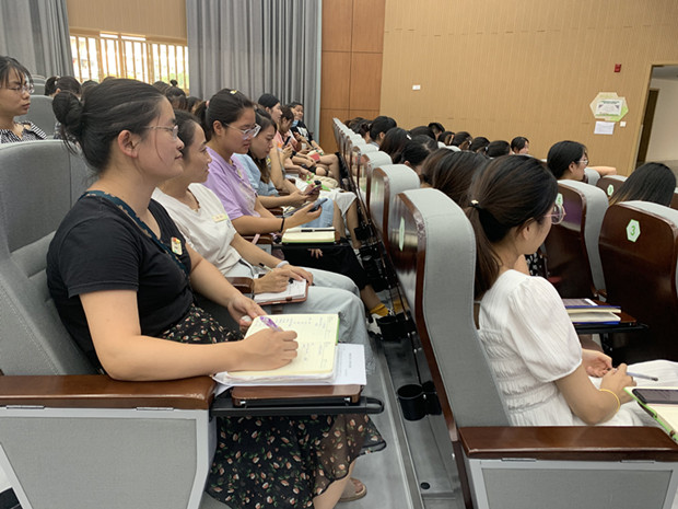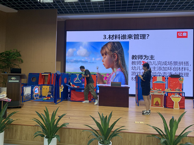 9月7日下午,龙虎塘街道中心幼儿园四园区教师齐聚盘龙新园区多功能室,聆听亿童培训师带来的亿童户外角色区游戏培训讲座。