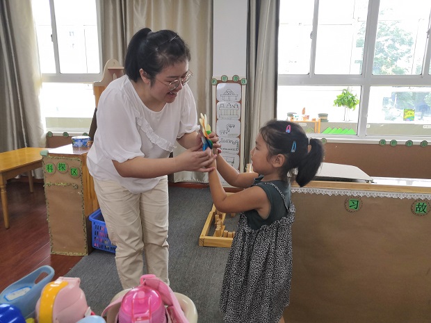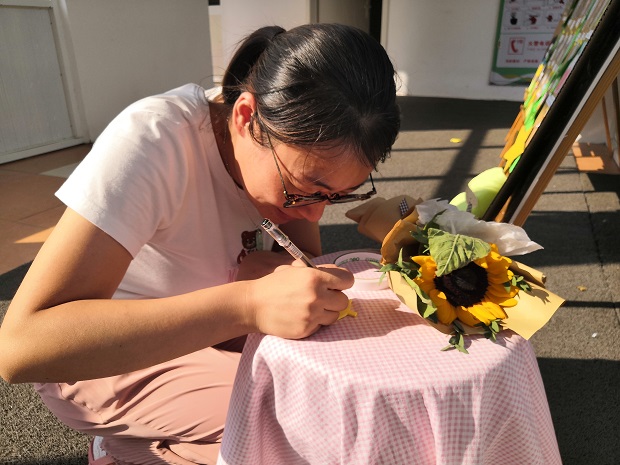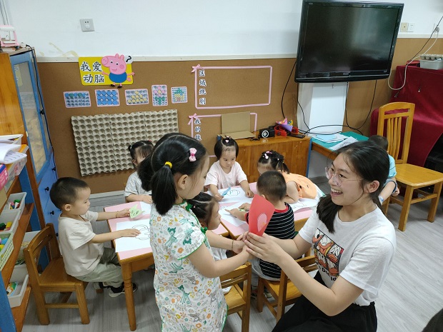 入园时,一声声清脆悦耳的“老师,祝您节日快乐!”道出了孩子们对老师们的暖心祝福。中大班的孩子们用自己亲手做的手工,向全园的老师们表达了自己的爱意。收到手工礼物的老师们个个都乐开了花,激动地抱抱孩子、亲亲孩子,这是收获亦是甜蜜,这是欣喜亦是满足。爱,在这里萌芽......