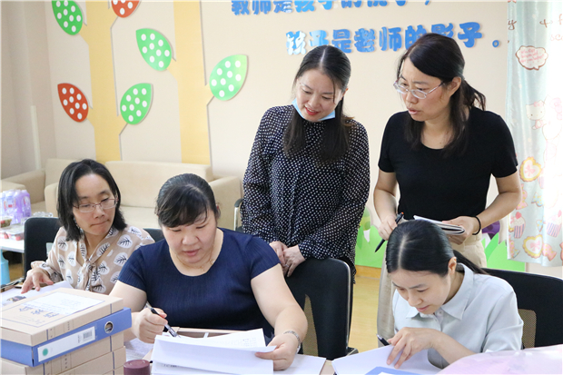 本次工作复评主要以查阅资料和实地勘察两部分组成。检查组一行首先听取了保健主任戴金敏以“求真务实、精心育苗、争创品牌”为主题的汇报,随后对幼儿园日常保育保健工作台账进行了细致的检查,包括保教人员卫生保健知识培训情况、膳食委员会会议记录、幼儿营养膳食管理、各种消毒记录、传染病预防控制预案等内容。