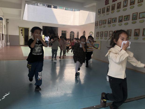 活动前,幼儿园制定了详细、周密的消防疏散演练方案,对各岗位人员进行了培训,做到分工明确、责任到人。伴随着紧急警报声响起,演练开始。各班教师迅速按消防预案的疏散线路,有序带领幼儿拿起湿毛巾,捂住口鼻,弯腰小步快走,迅速且有序下楼。途中,孩子们有序、快速撤离。撤离到安全区域后,各班教师迅速清点人数,并向总指挥陈园长报告。此次演练从警报声拉响到全园安全撤离到操场仅用时1分25秒。